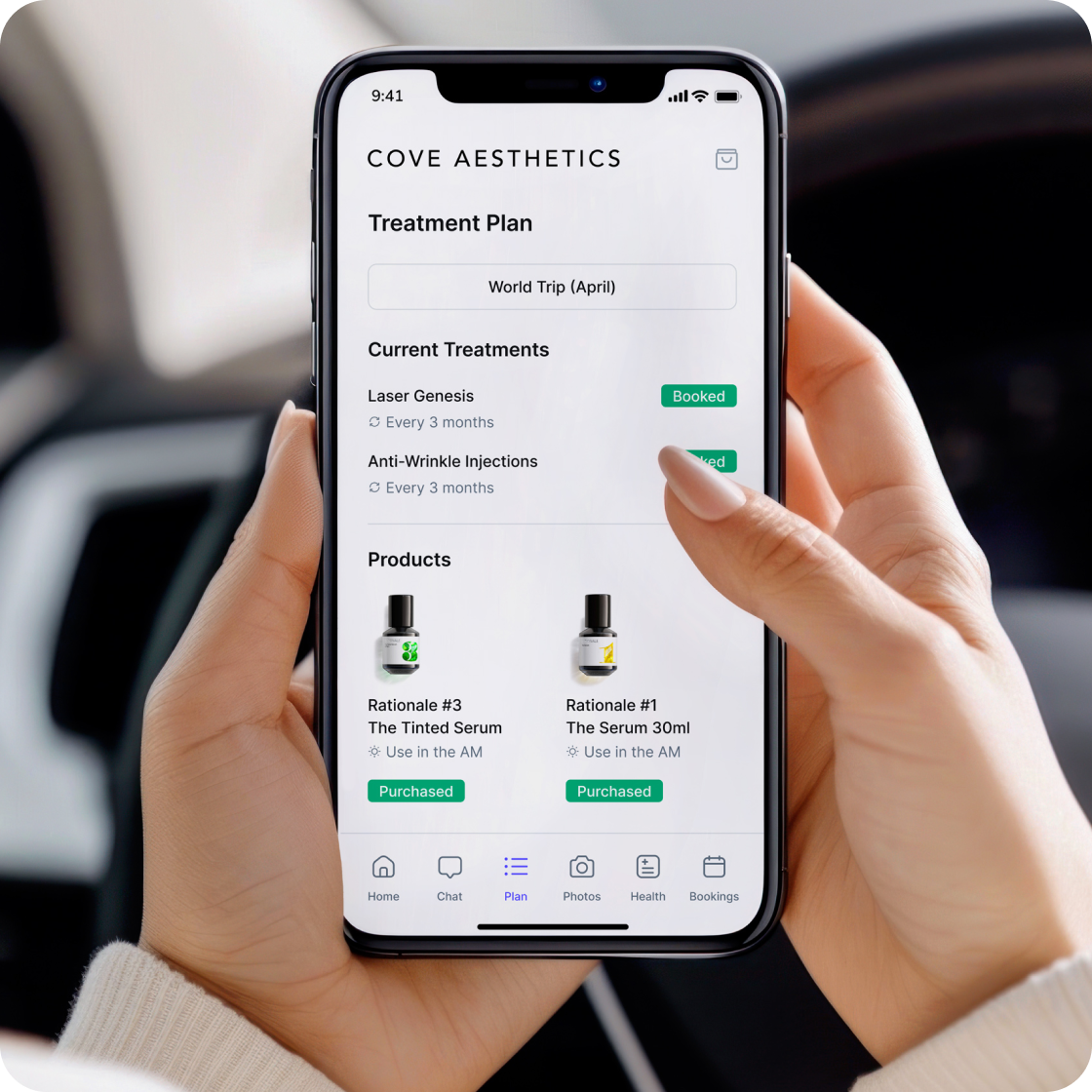 Build skincare into every treatment plan with personalised recommendations, on-the-day purchasing and in-app repurchasing prompts. Help patients stay committed to their skincare goals while driving recurring sales.