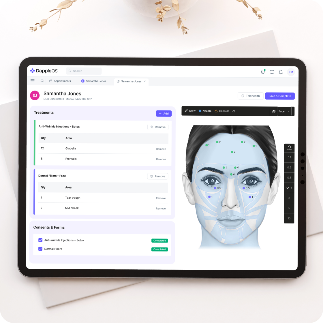 With a structured treatment flow, every step is mapped and compliant. Notes, photos and follow-ups are captured as you go, so you can focus on your patient, not the paperwork.