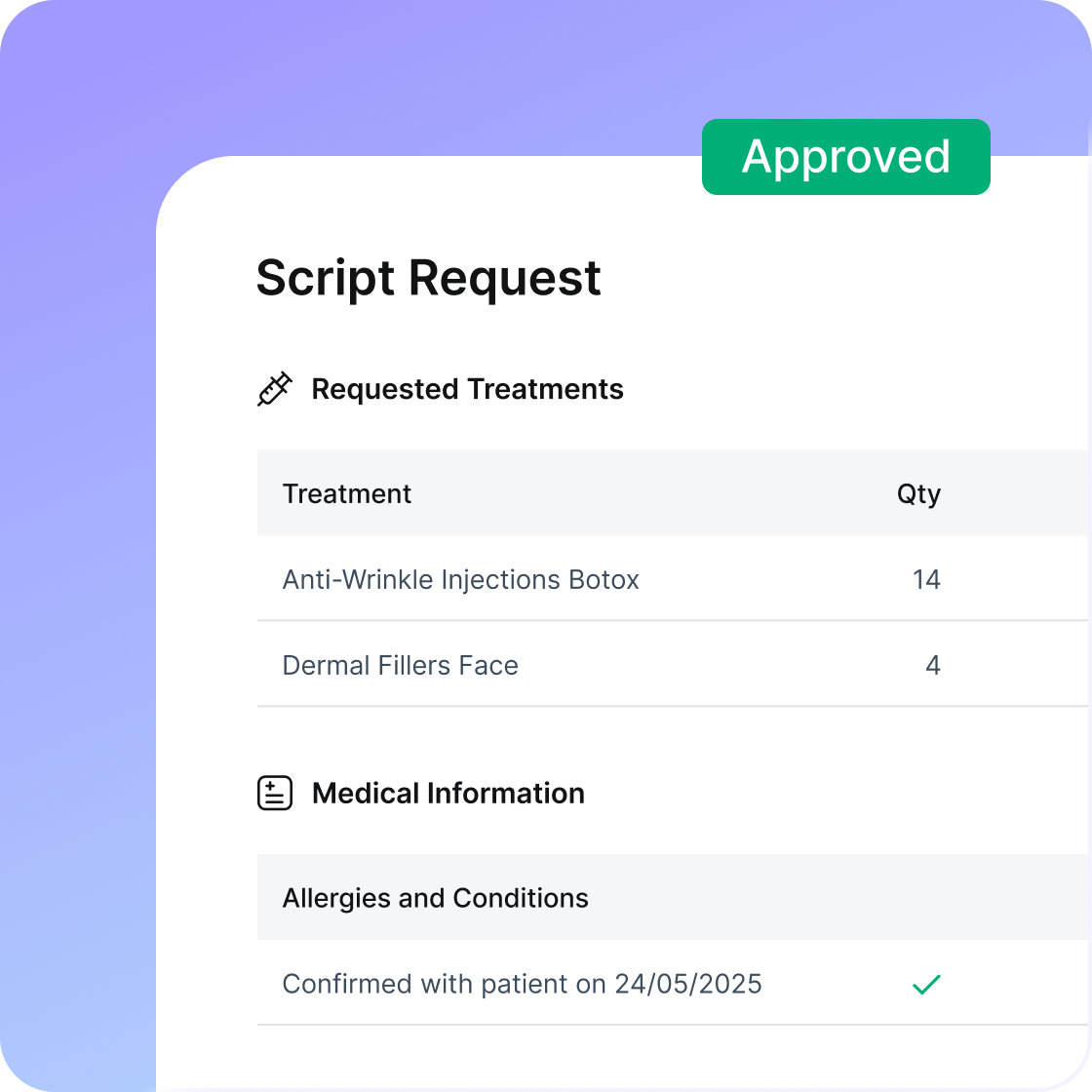 Every injectable is linked to a valid script, complete with batch, barcode and expiry—compliant, by default.